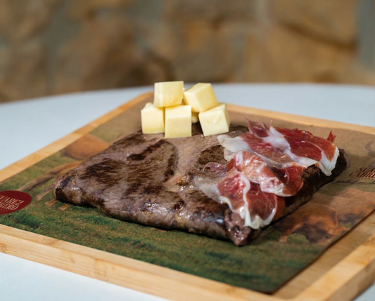 Disfruta de nuestra carne 100% buey asturiano y del queso Cabrales más caro del mundo.