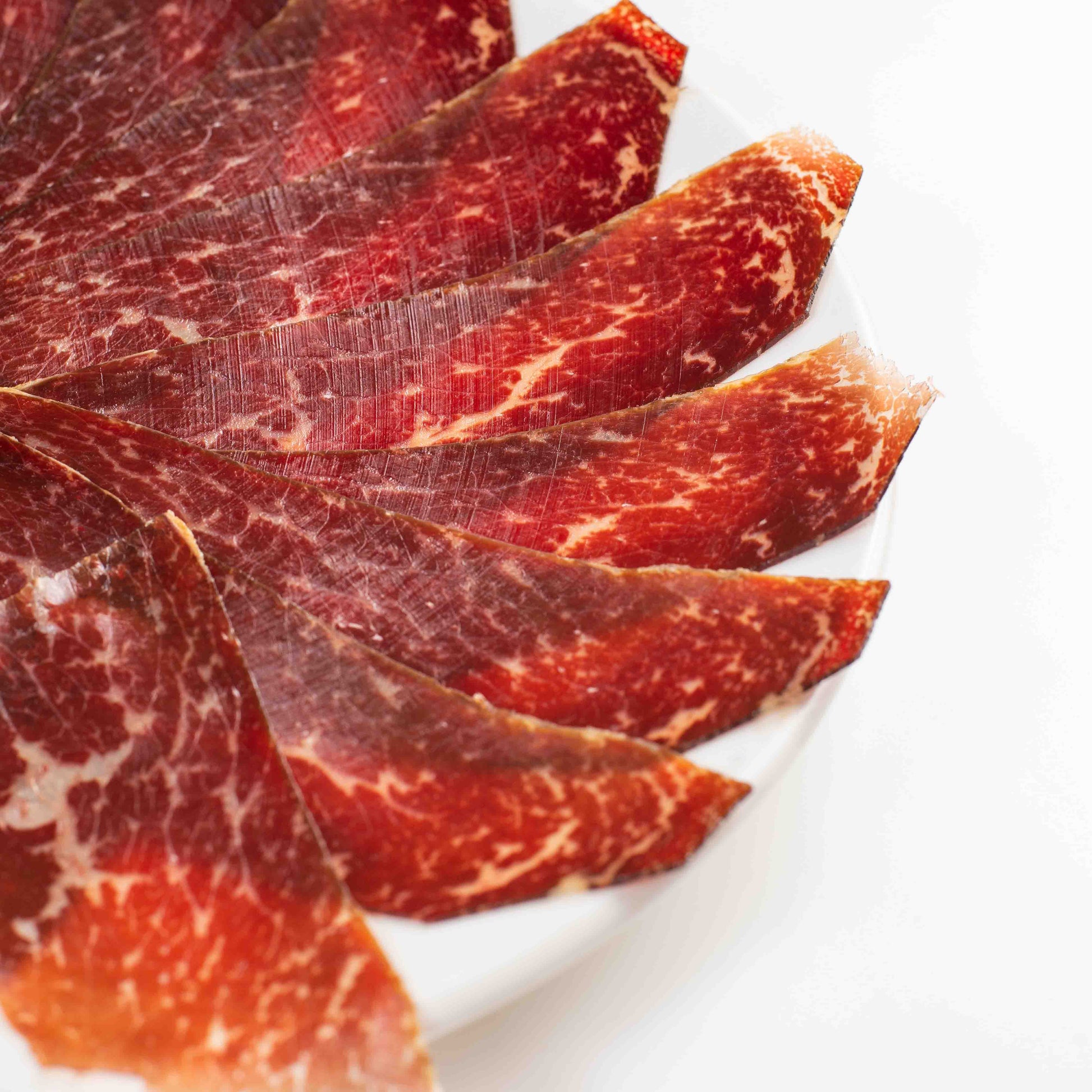 La carne de buey Suárez Cabrero toma forma para convertirse en una suculenta bandeja de cecina lonchedada envasada al vacío llena de sabor y jugosidad. Ideal para disfrutar en familia o reuniones de amigos.